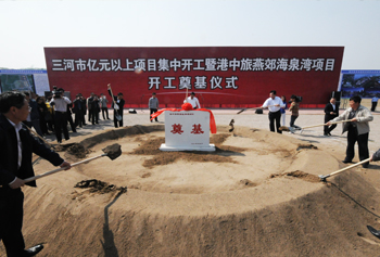 上午,我市举行亿元以上项目集中开工暨港中旅燕郊海泉湾项目开工奠基仪式。